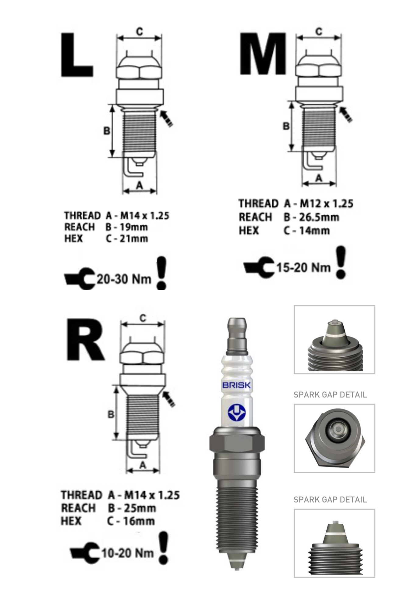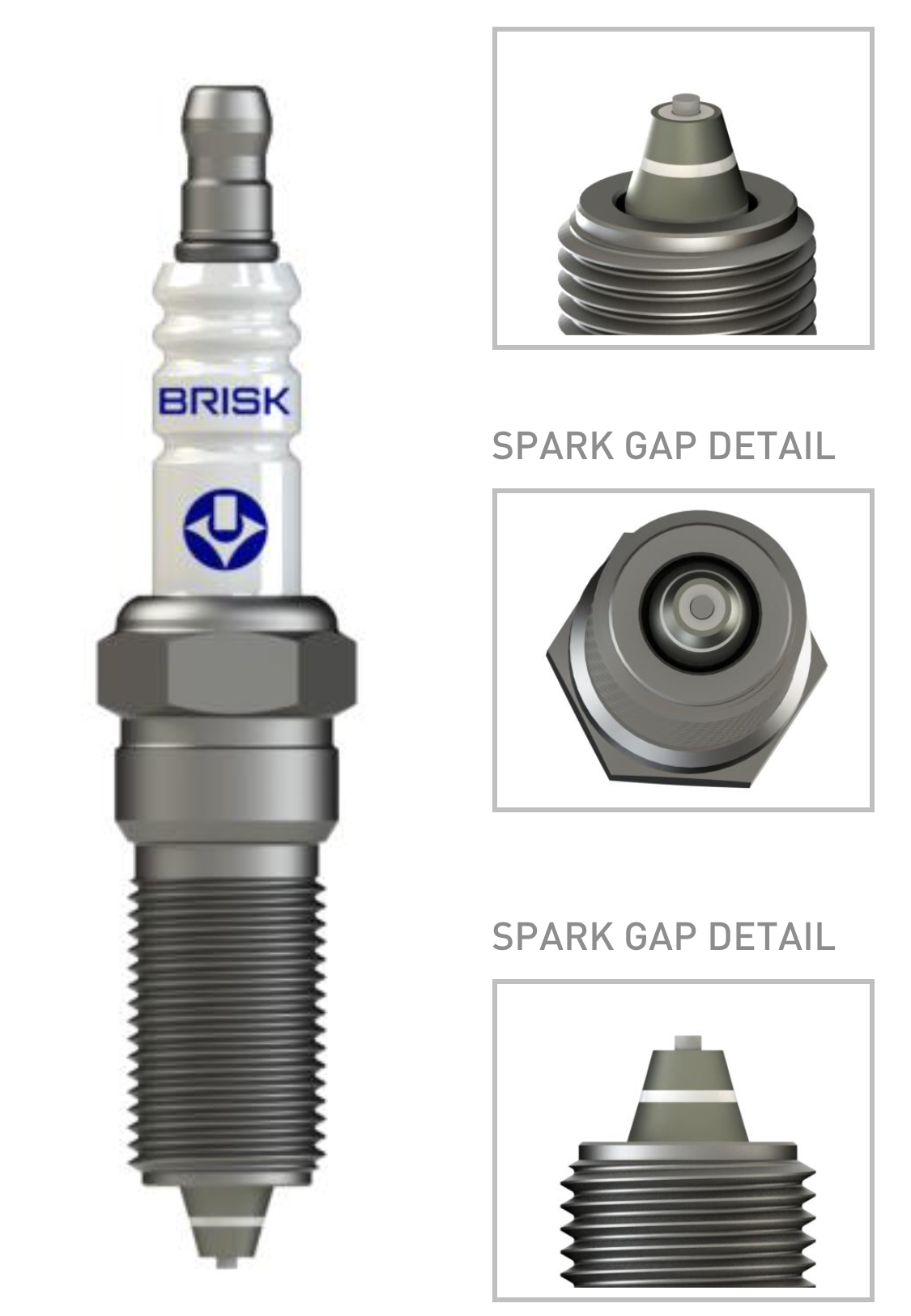 絶縁体先端の表面に2つの補助電極を有するスパークプラグ。点火システムの1つのインパルスで3つの連続したスパークが発生し、全周(360°)でスパークオーバーする可能性を求めています。ブリスク社の特許技術により絶縁体先端に堆積された補助電極の独自の特性と、圧縮比の上がり方を平衡化させることにより、エンジン出力を高める狙いがあります。特殊な形状のスパークギャップは燃焼室の中に深く突き出ており、混合気の完全な点火燃焼に寄与します。マルチスパーク(ZC / ZS)スパークプラグの性能を正しく発揮するにはは強化された点火システムと高回転域での理想的な混合気配分が必要となります。*過給機付きのモデルのエンジンでは正しく機能しない場合があります。